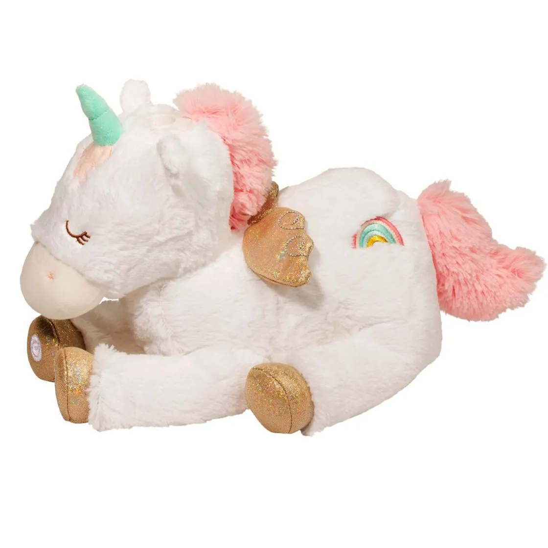 Dream A Magical Fairytale With Emilie, Our Soft And Sweet Starlight Musical Unicorn Plush Toy! A Stuffed Animal Like Few Others, This Fantasy Horse Is Designed To Make Bedtime Fun. It Projects A Whimsical Moon And Stars Pattern Onto The Ceiling While Playing The Melody Of Familiar Soothing Lullabies. There Are Multiple Melodies To Hear And Control Options Include Repeat, Independent On/Off Light & Sound, And Auto Shut-Off After 5 Minutes. Ultra Soft White And Pink Plush Materials Have Been Used To Craft A Sleepytime Pal So Soft, You’Ll Have To Feel It To Believe. Bring This Cuddly Pony Home And Let It Transform Your Baby’S Nursery Into A Nighttime Wonderland! Enjoy On Its Own Or Pair With Other Accessories From Our Emilie Unicorn Collection For An Attractive Matched Set!