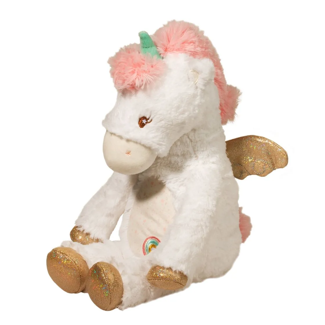 Sparkly Stars And Other Celestial Magic Abounds With Emilie, Our Lovable Unicorn Plumpie Stuffed Animal! Understuffed And Created With The Cuddliest Plush Materials This Fantasy Pony Is A Wonderful Friend To Snuggle And Love! A Sweet And Sophisticated Color Palette Brings Together Creamy Whites With Pastels In Pink And Teal. Baby Safe Embroidery Details Her Eyes And A Colorful Rainbow On Her Belly Enhances Her Design. Exciting Shimmer Fabric Lends A Dash Of Fairytale Mystique And Is Featured On Her Pegasus Wings And Her Four Hooves. Shop Our Entire Emilie Unicorn Collection To Put Together A Custom Ensemble Of Coordinating Unicorn Accessories.